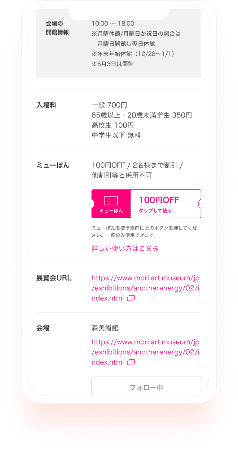 東京・関東エリアの展覧会などでクーポンによる割引が受けられます。