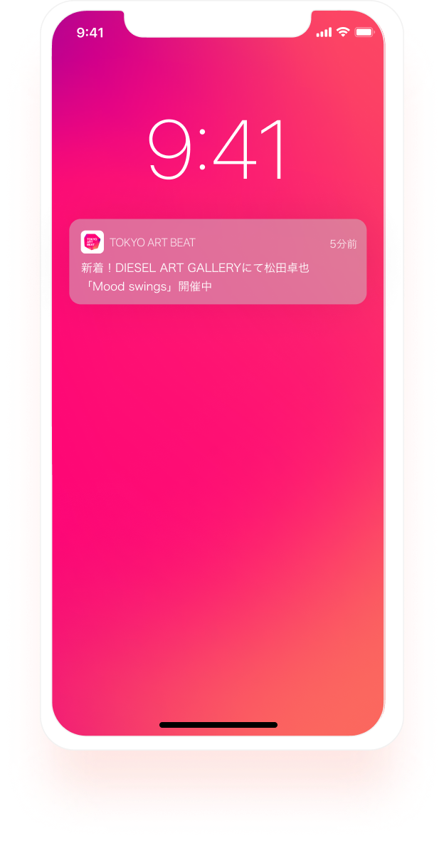 ブックマークした展覧会や、お気に入りのアートスペースの情報が通知されます。
