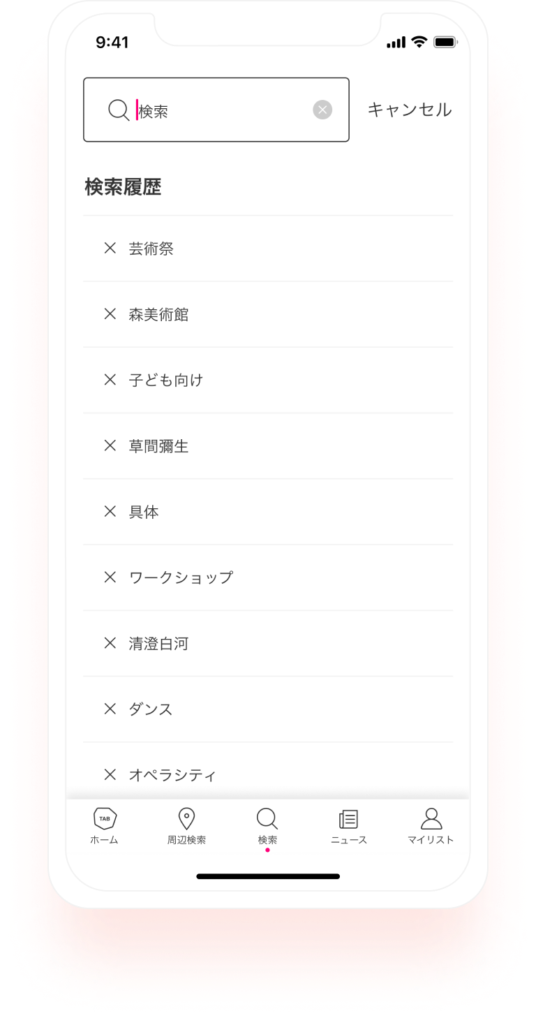 アーティストやスペース、展覧会名からアプリ内の展覧会をすべて検索できます。