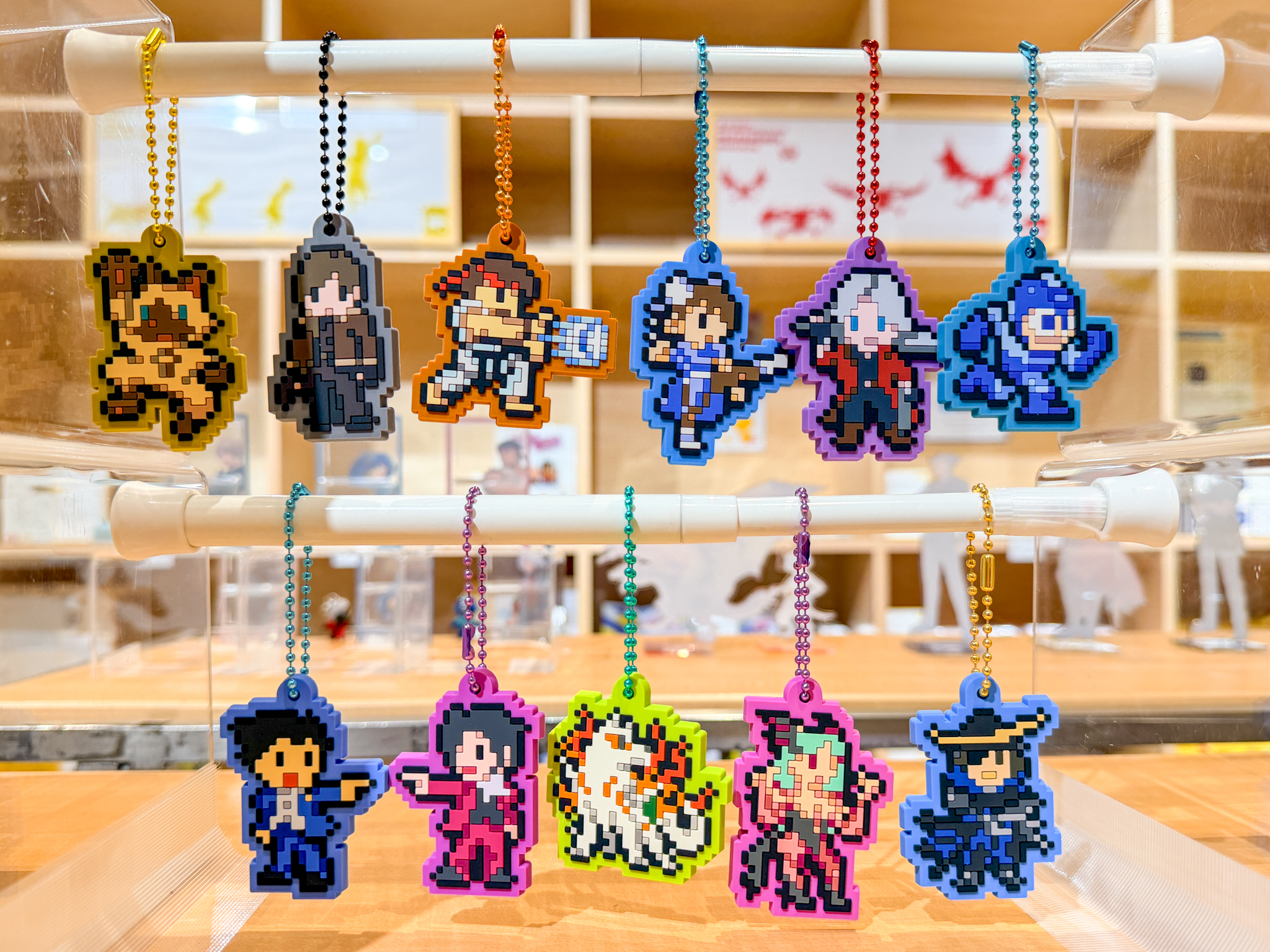 ドット絵の人気キャラクターたちがラバー製キーホルダーになって登場。アイルー、レオン、リュウ、春麗、ダンテ、ロックマン、成歩堂、御剣、アマテラス、モリガン、伊達政宗の全11種で展開されている。価格は各770円(税込)。